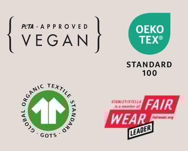 Unsere Corporate Wear steht für echte Verantwortung. Wir verwenden ausschließlich Bio-Materialien, die unter fairen Bedingungen produziert werden – zertifiziert nach GOTS, OEKO-TEX, Fair Wear & PETA-Approved Vegan. Für Sie bedeutet das: Kleidung mit gutem Gewissen.